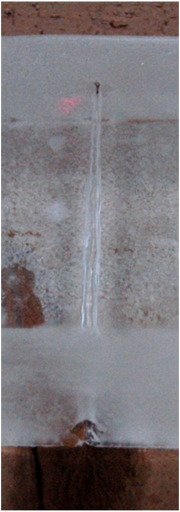 Bloque de hielo penetrado por la irradiación láser de CO2. El láser